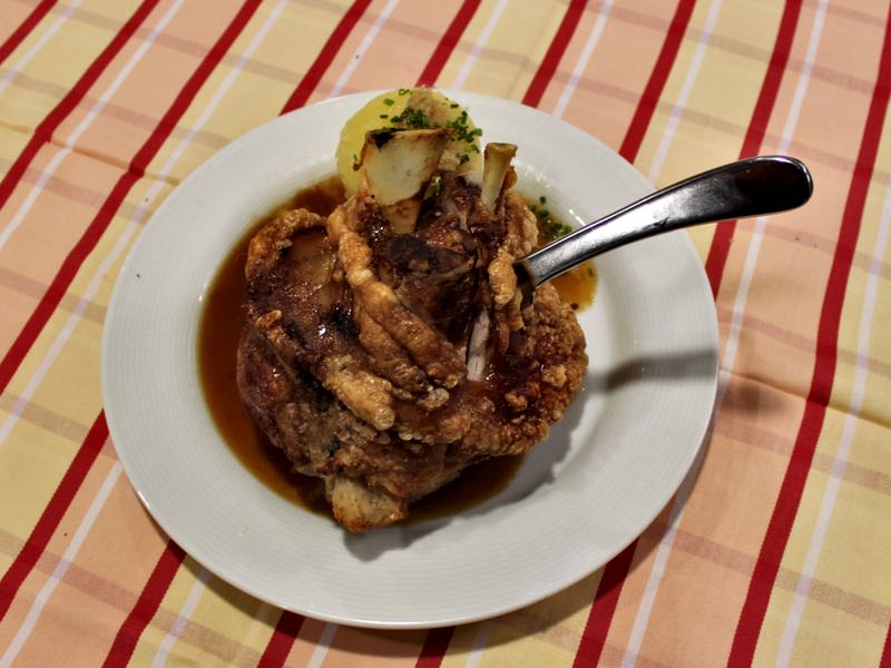 | Haxnfleisch vom Schwein 17,50 € mit Kartoffelknödel und Blaukraut |