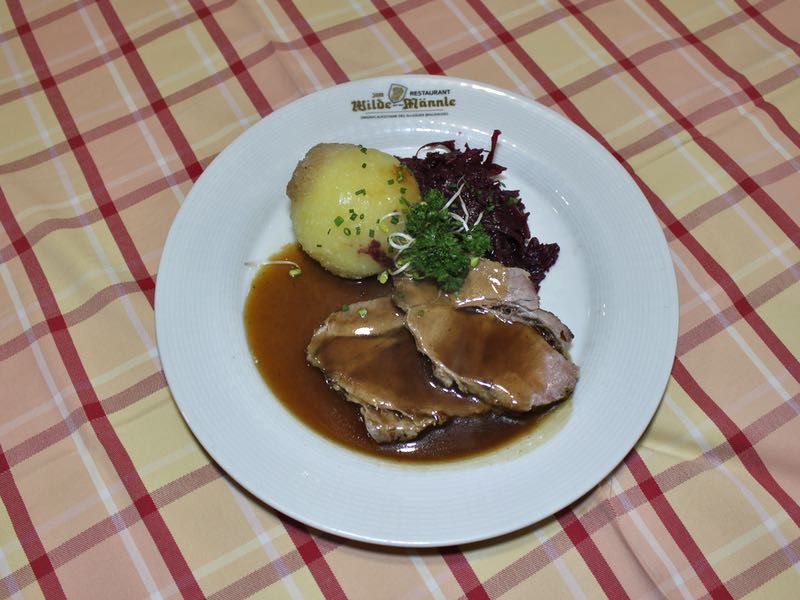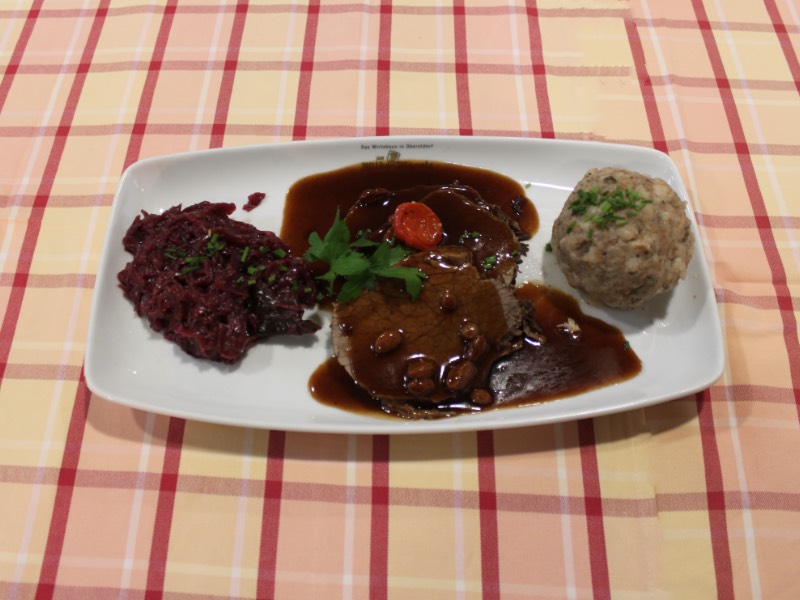 | Sauerbraten Rheinische Art 20,50 € (Rind) mit Blaukraut und Semmelknödel |