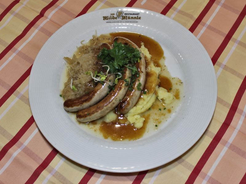 | 3 Rostbratwürstle 15,50 € mit Kartoffelstampf und Fasskraut |