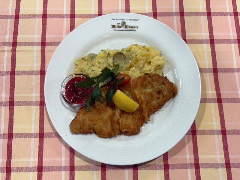 | Schnitzel Wiener Art 17,90 € vom Allgäuer Landschwein mit Pommes Frites |